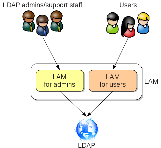 This is the main part of the application. It allows to manage a large list of LDAP entries (e.g. users, groups, DNS entries, ...). This part is accessed by LDAP admins and support staff.