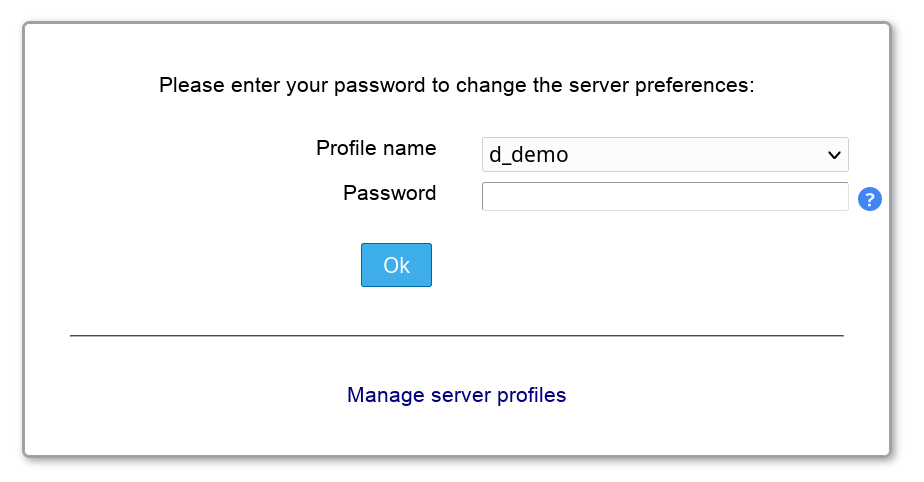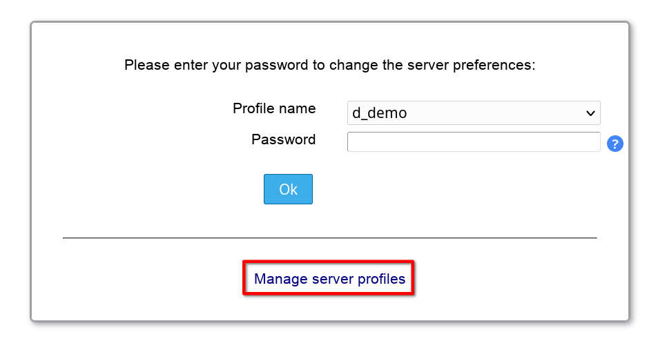 Here you can create, rename and delete server profiles. The passwords of your server profiles can also be reset.