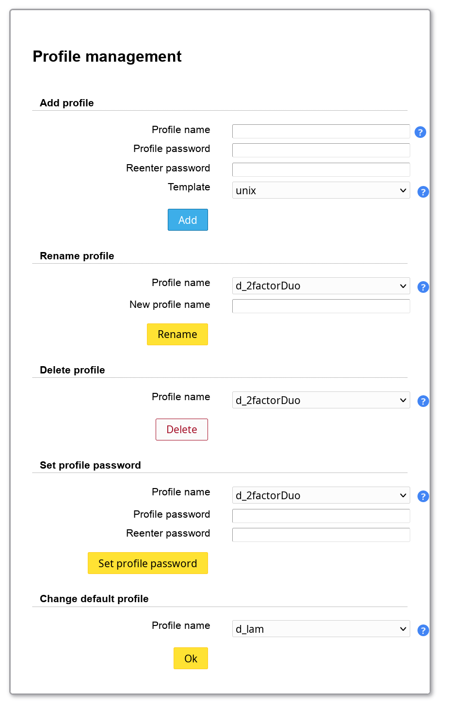 All operations on the profile management page require that you authenticate yourself with the configuration master password.
