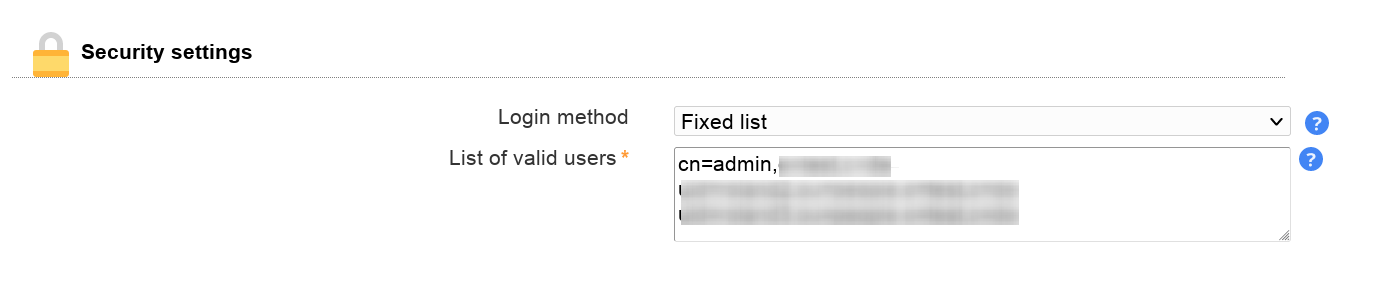 The first one is to specify a fixed list of LDAP DNs that are allowed to login. Please enter one DN per line.