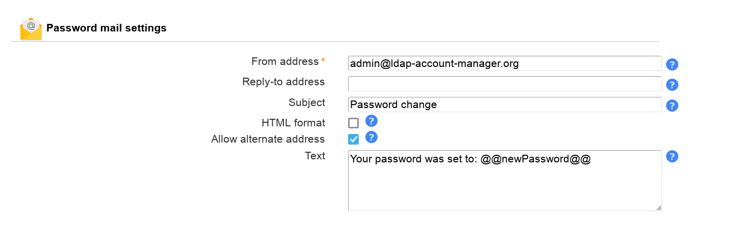 LAM Pro users can send out changed passwords to their users. Here you can specify the options for these mails.