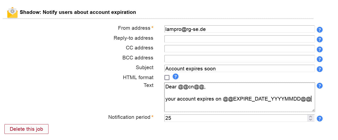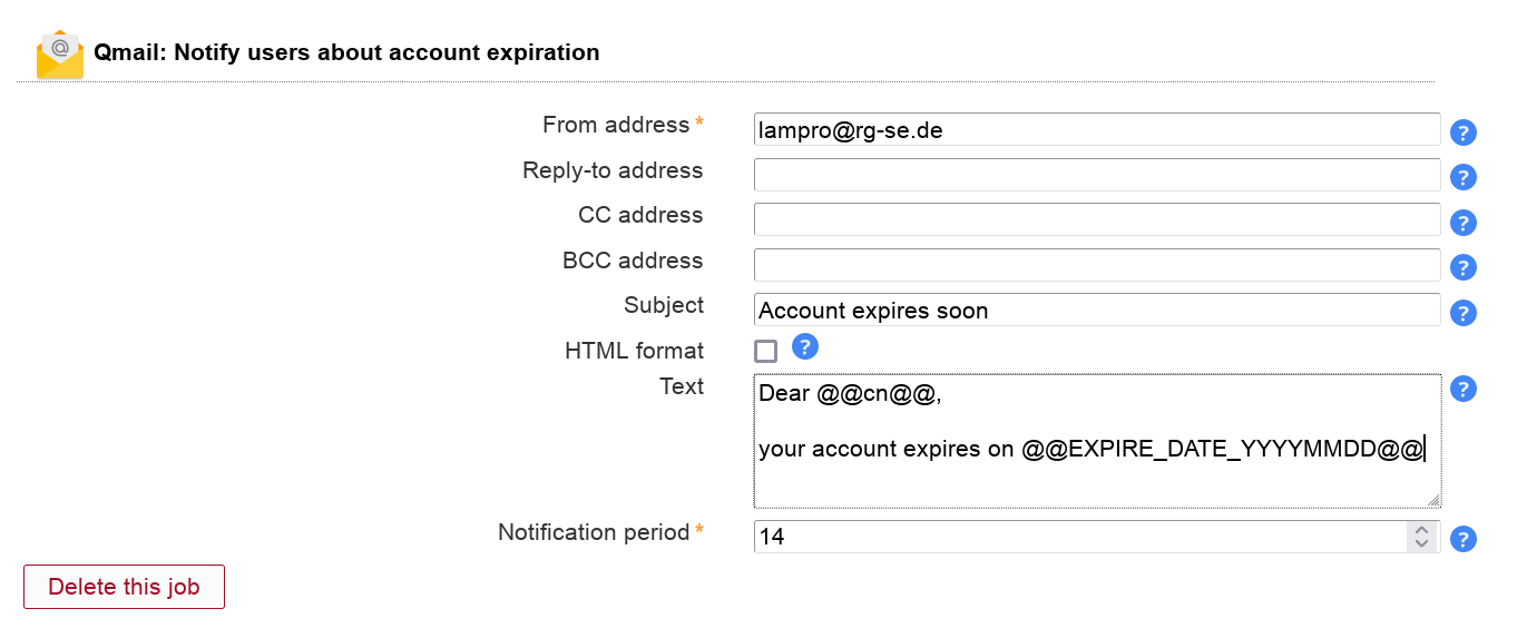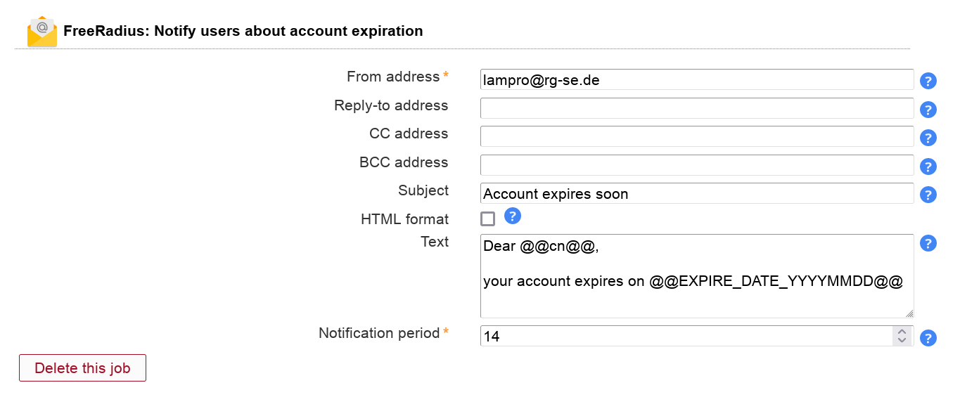 You need to activate the FreeRadius module for users to be able to add this job. The job can be added multiple times (e.g. to send a second warning at a later time).