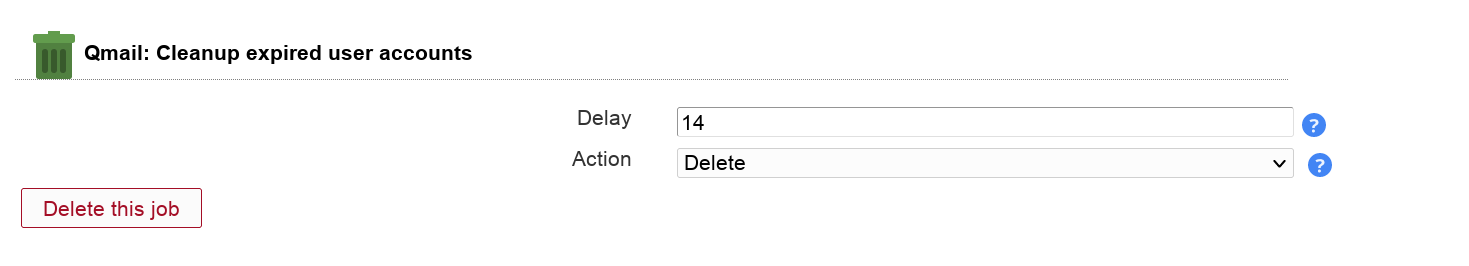 You can automatically delete or move expired accounts. The job reads the qmail deletion date of user accounts.