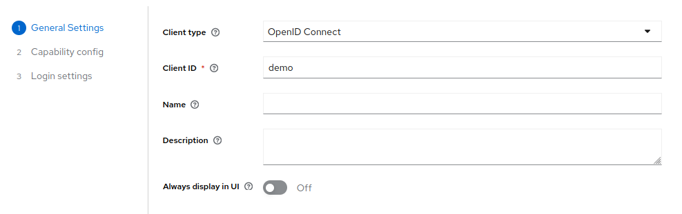 Create a new client, select "OpenID Connect" client type and enter a client ID.