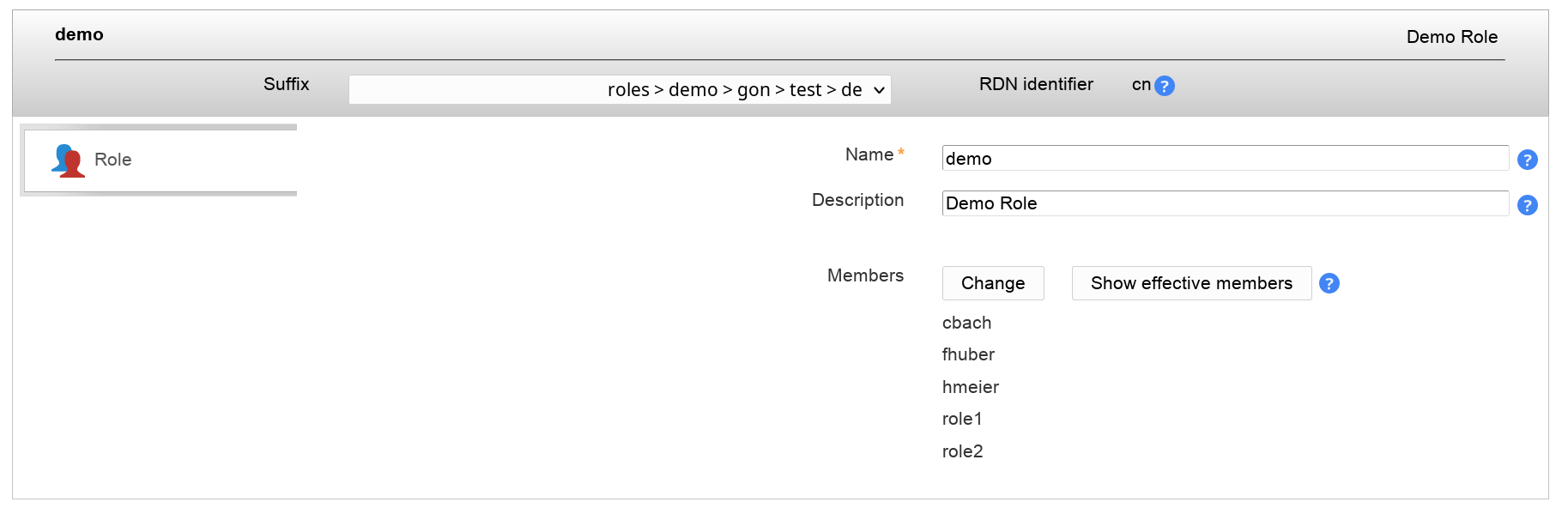 This module manages roles via the organizationalRole object class. There is also a user module to manage memberships on the user edit page.