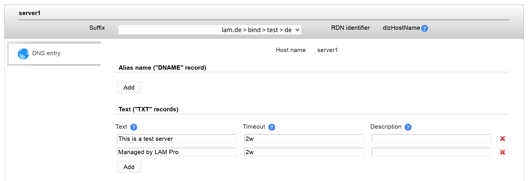 Please set the LDAP suffix either to an existing DNS zone (dlzZone) or an organizational unit that should include your DNS zones.