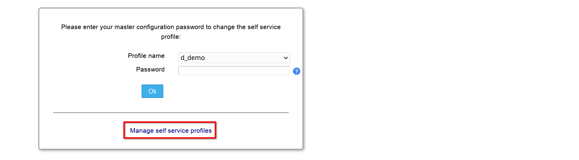 Now we need to create a new self service profile. Click on the link to manage the self service profiles.