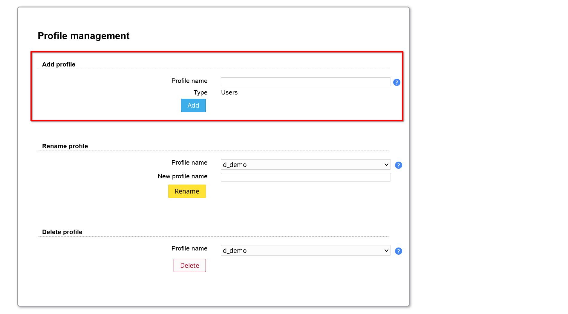 A self service profile defines what input fields your users see and some other general settings like the login caption.