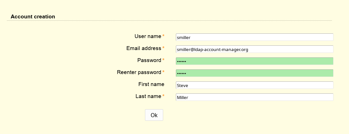 You can also manage custom password fields. LAM Pro will display two fields where the user must enter the same password. You can hash the password if needed.