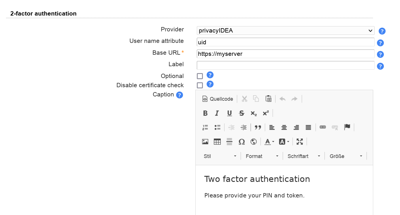 Base URL: please enter the URL of your privacyIDEA instance