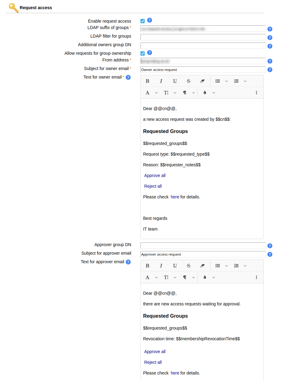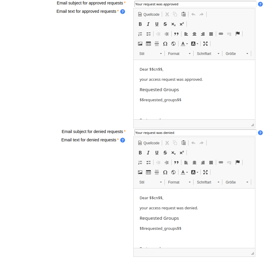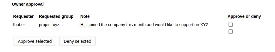 Once the request is created, all owners of the respective groups get an email notification. They can then enter self service and view their open requests.