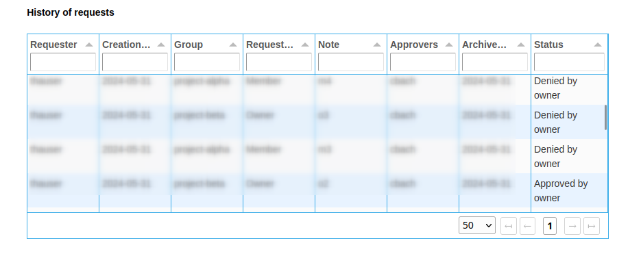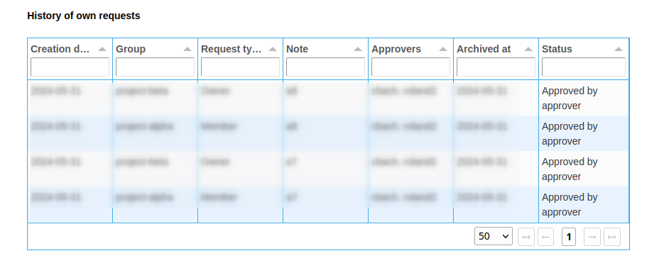 Request Access: History of own requests - History of the current user's requests