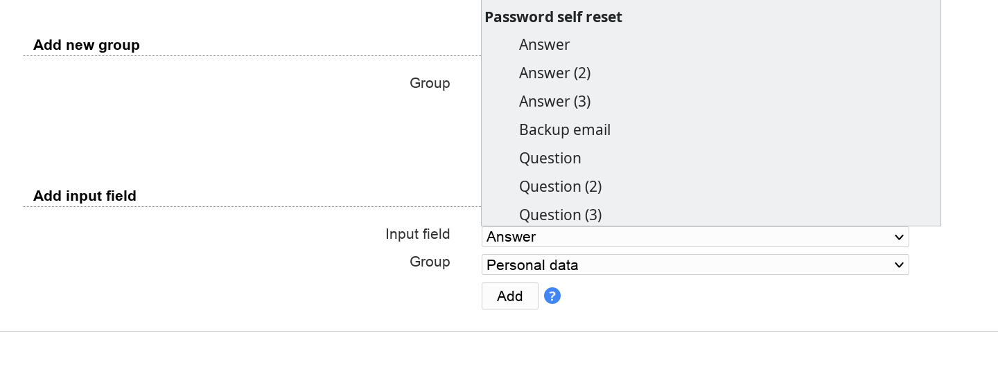 Here you can specify what input fields your users can see. It is also possible to group several input fields.