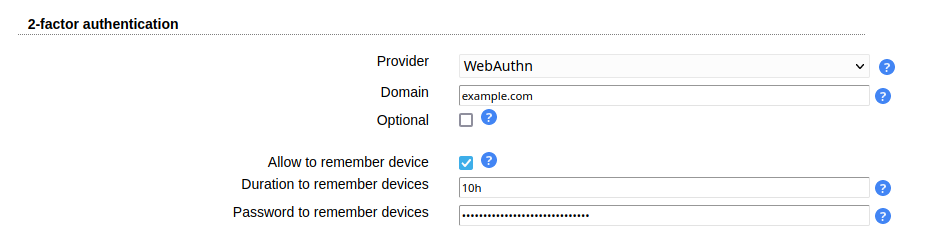You can allow users to remember the 2FA device for privacyIDEA, WebAuthn and YubiKey. When a device is remembered then users can login for the specified time without presenting their 2nd factor.